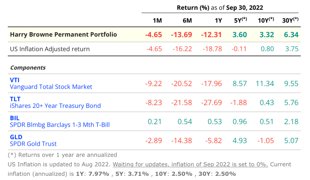 We won’t rehash the obvious news that stocks are in the midst of a bear market. That said, bear markets don’t last forever and capitulation is gradually flushing out weak hands. We saw a recent bounce to start Q4 after an absolutely brutal September. This market action was similar to the bear market rallies we saw in July after a sharp drawdown in June. Whether the market is looking for solid footing or holding out for the Fed to walk back some of its hawkish rhetoric, it’s the tug of war we’re in; that’s the reality and until either the Fed tones it down or we get some seasonal midterm election love, the sledding will continue to be tough until the bear finally gets tired. The only good news for those in a Permanent Portfolio is that stocks (which have the highest upside long-term) are capped at 25% so even as the sky is falling, they can only hurt so much.